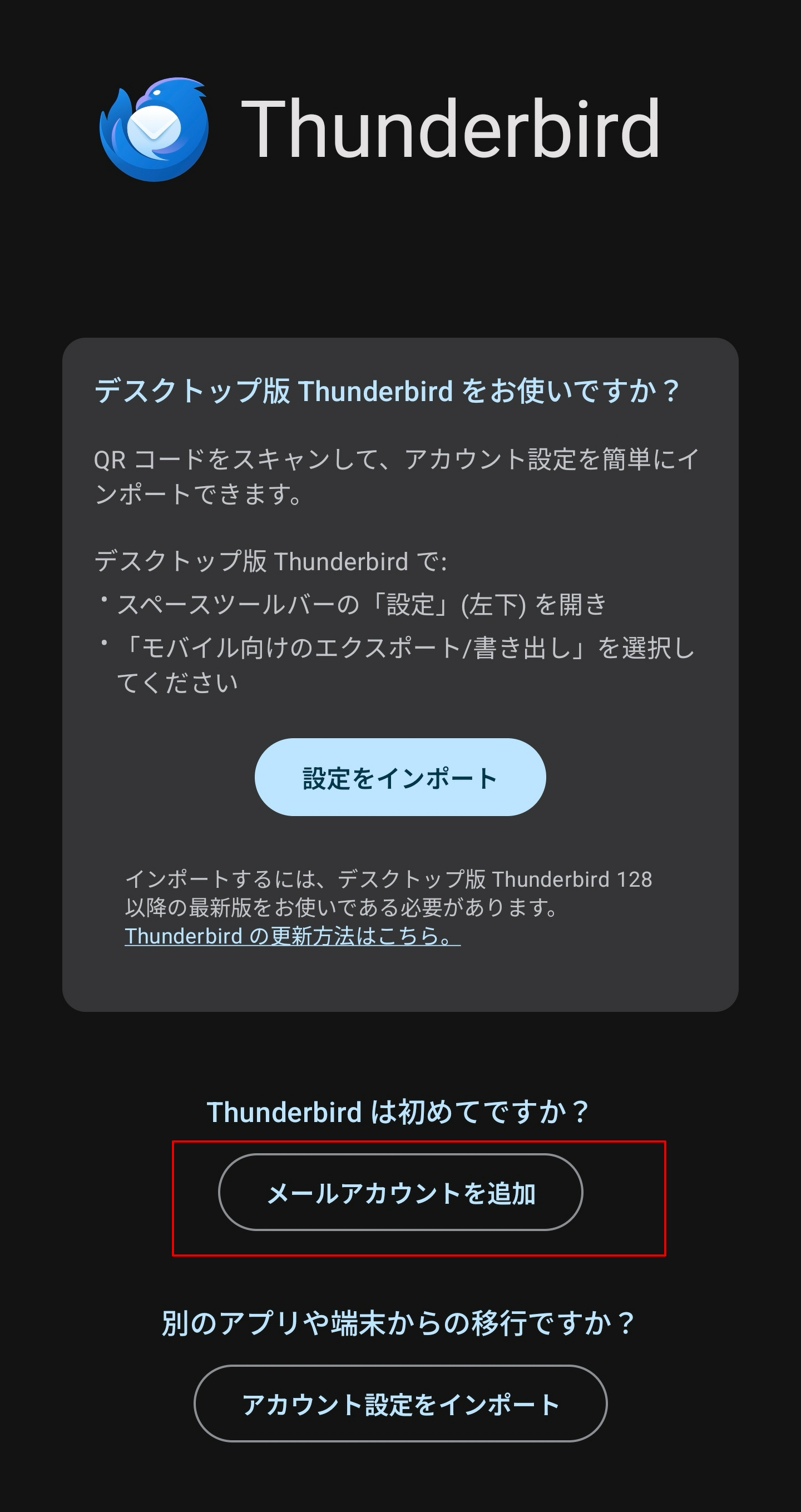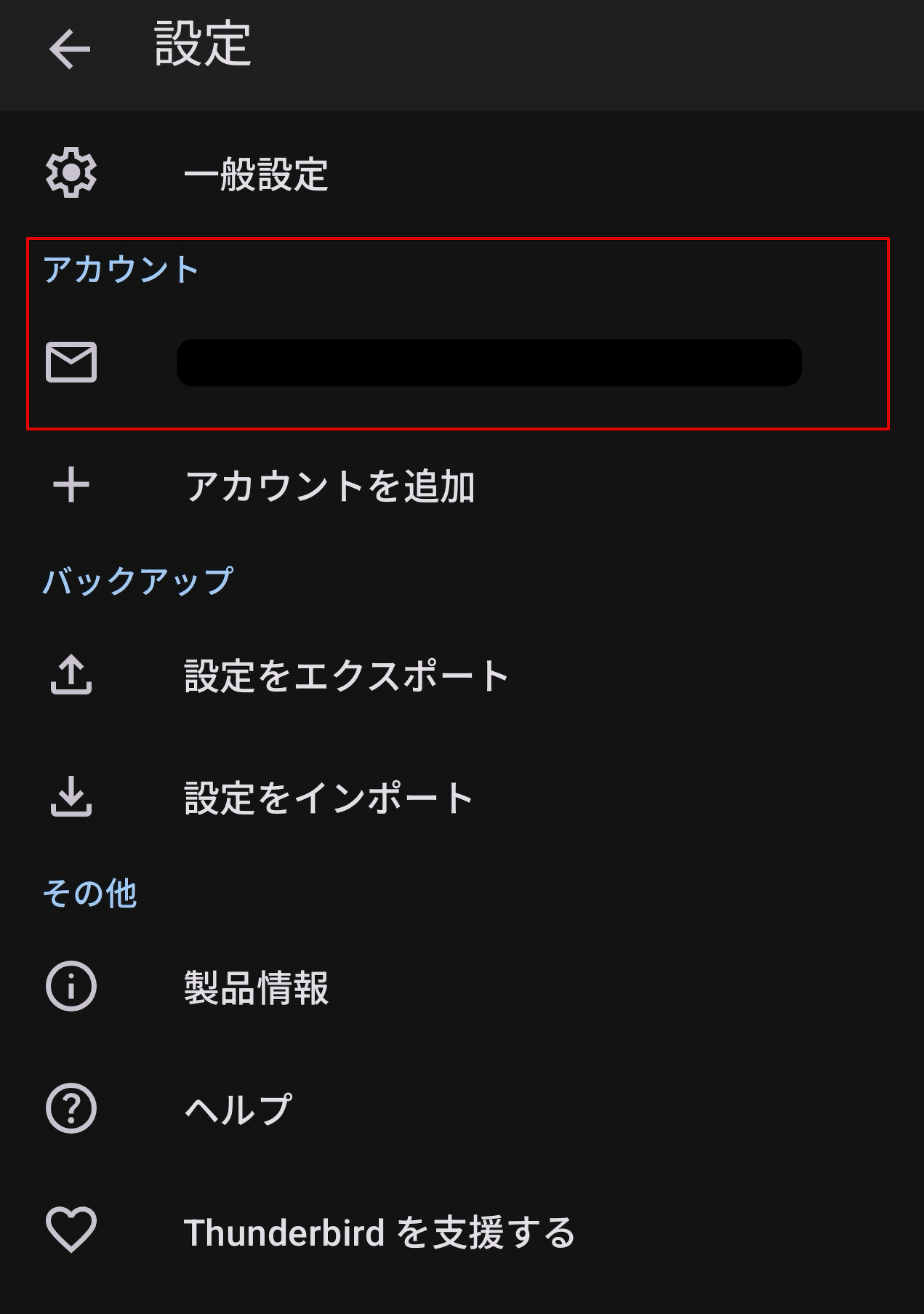 アカウントの追加は以上で完了となりますが、続けて設定します。