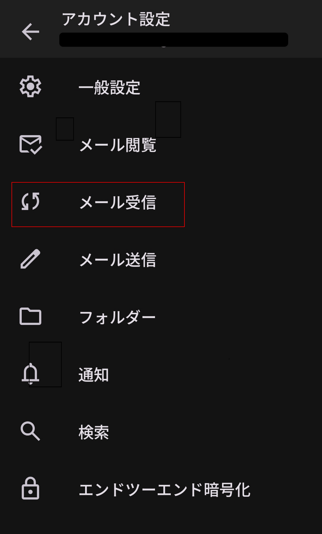 「アカウント」の項目より、今回設定したメールアドレスを選択します。