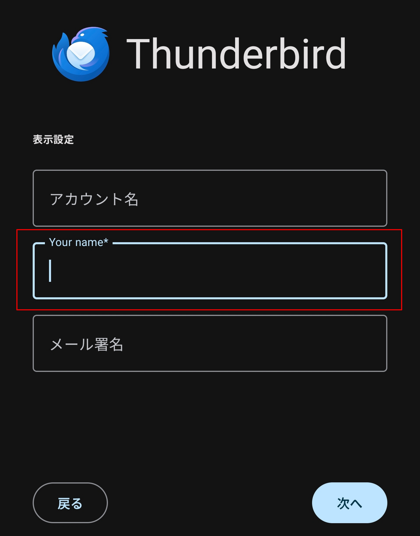 任意の名前を「Your name」へ入力後「次へ」を選択します。