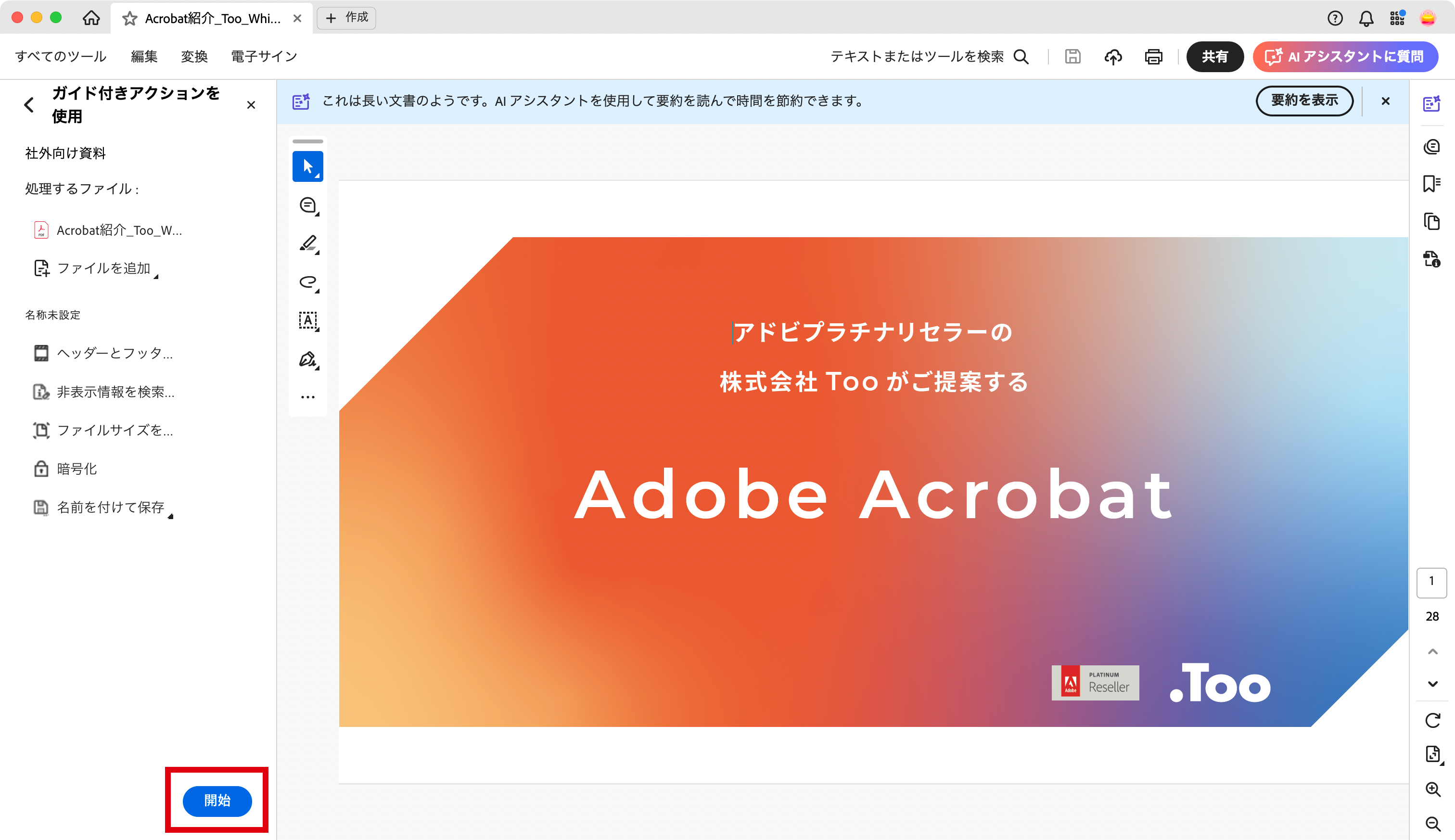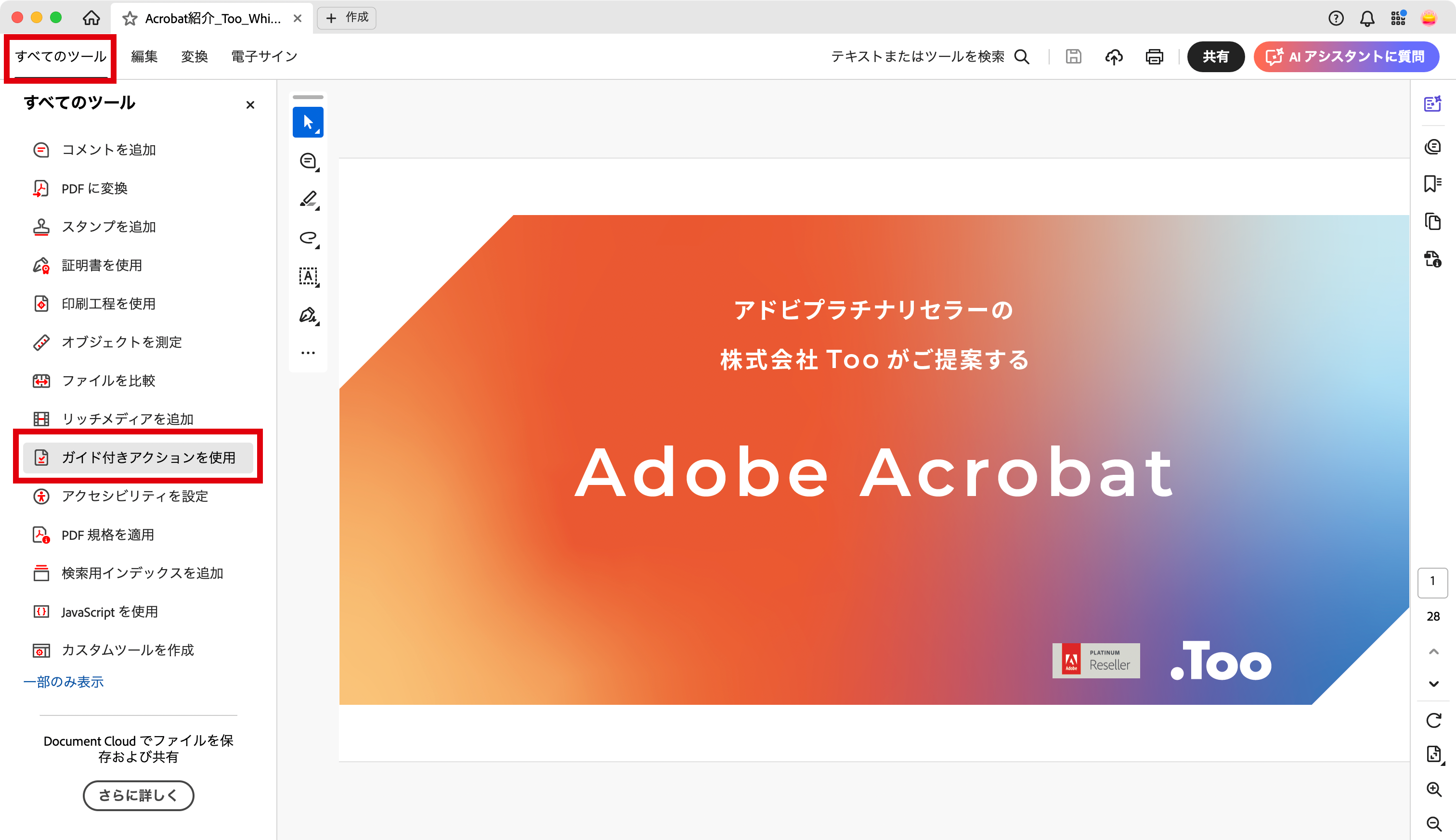 「Acrobat Proの活用方法を知りたい」「業務効率化の相談をしたい」などがあれば、Tooまでお気軽にお問い合わせください。