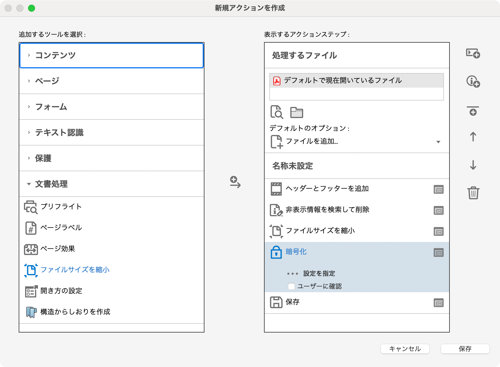 アクションウィザードでは、様々なPDF作業を組み合わせて自動化できます。以下は代表的な機能です。