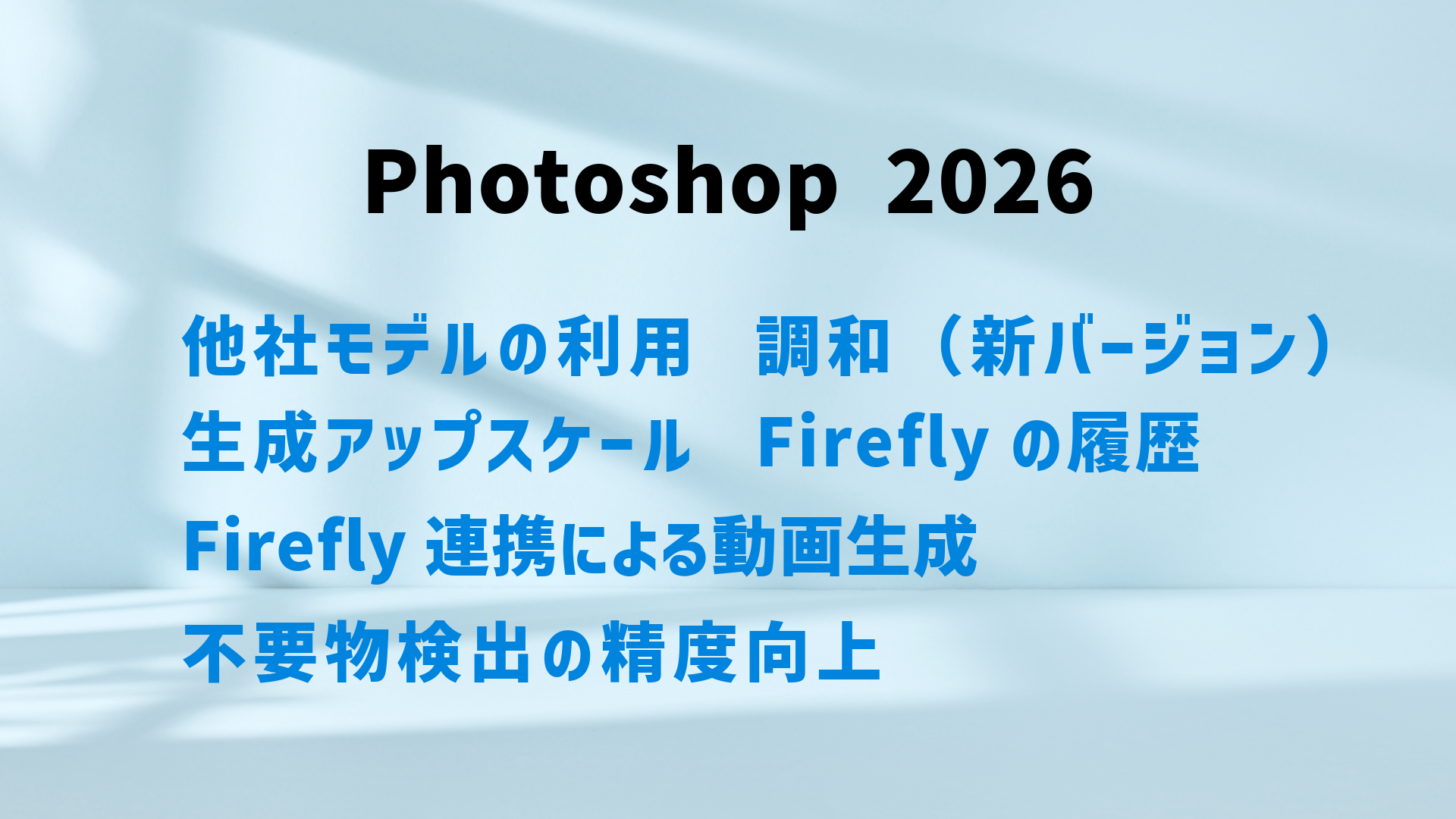 今回のCreative Cloud 2026では、各アプリの基盤に共通するクラウドワークフローの強化と生成AIの多層化が大きな特徴です。制作環境の「つながり方」が明確に変わりつつあります。