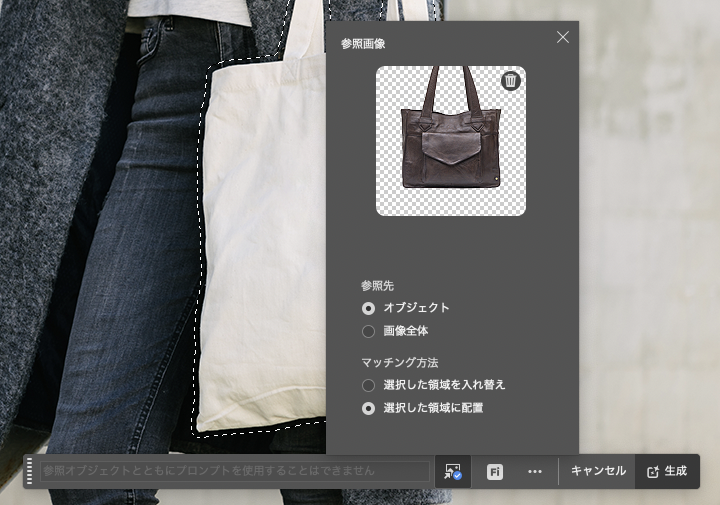 こちらは「参照画像」を用いて画像の中の特定のオブジェクトを置き換えることができます。
