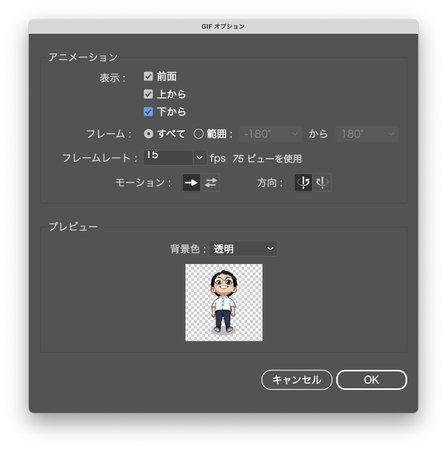 コンテキストタスクバーから、生成した複数アングルのビューを直接GIFアニメーションとして書き出せるようになりました。WebやSNS用のちょっとしたアニメーションや、キャラクターのターンアラウンド(全周)づくりが圧倒的に効率化されます。