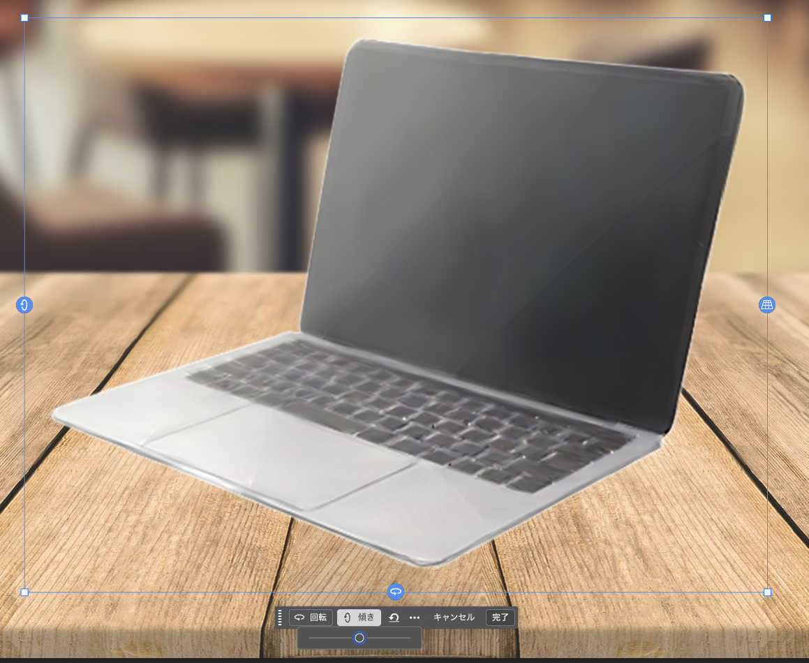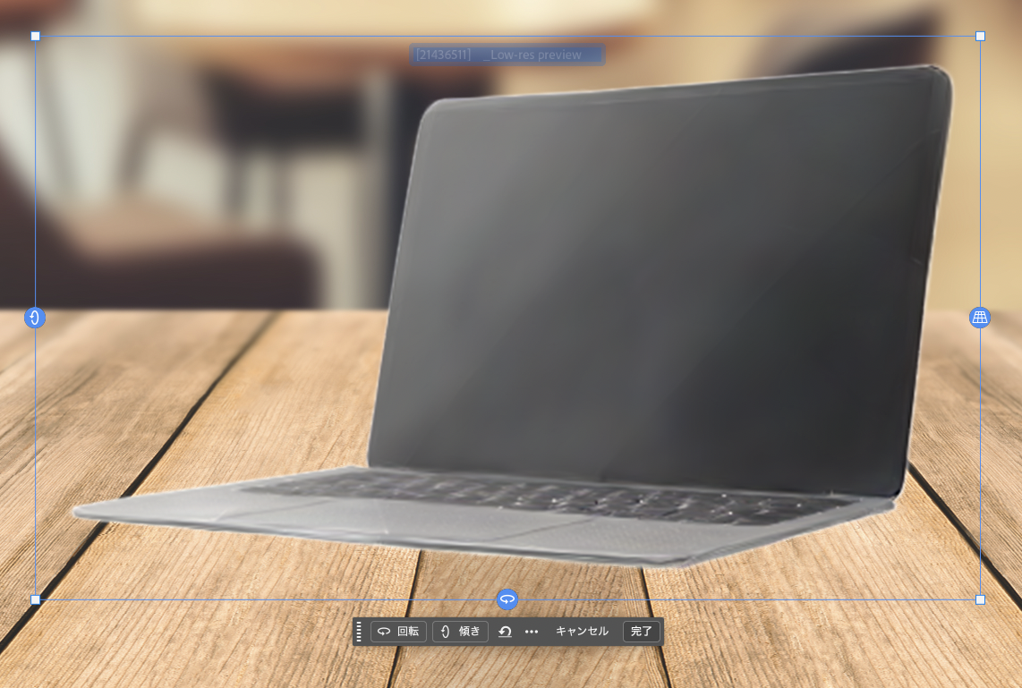 こちらは画像内の被写体を生成AIが解析し、3D空間のようにぐるぐると回転(スピン・チルト・ドリー)させることができる機能です。背景画像に合わせて、あと少しだけ被写体の向きを変えたい、商品の角度を微調整したい......といった合成作業の常識を覆す機能になっています。