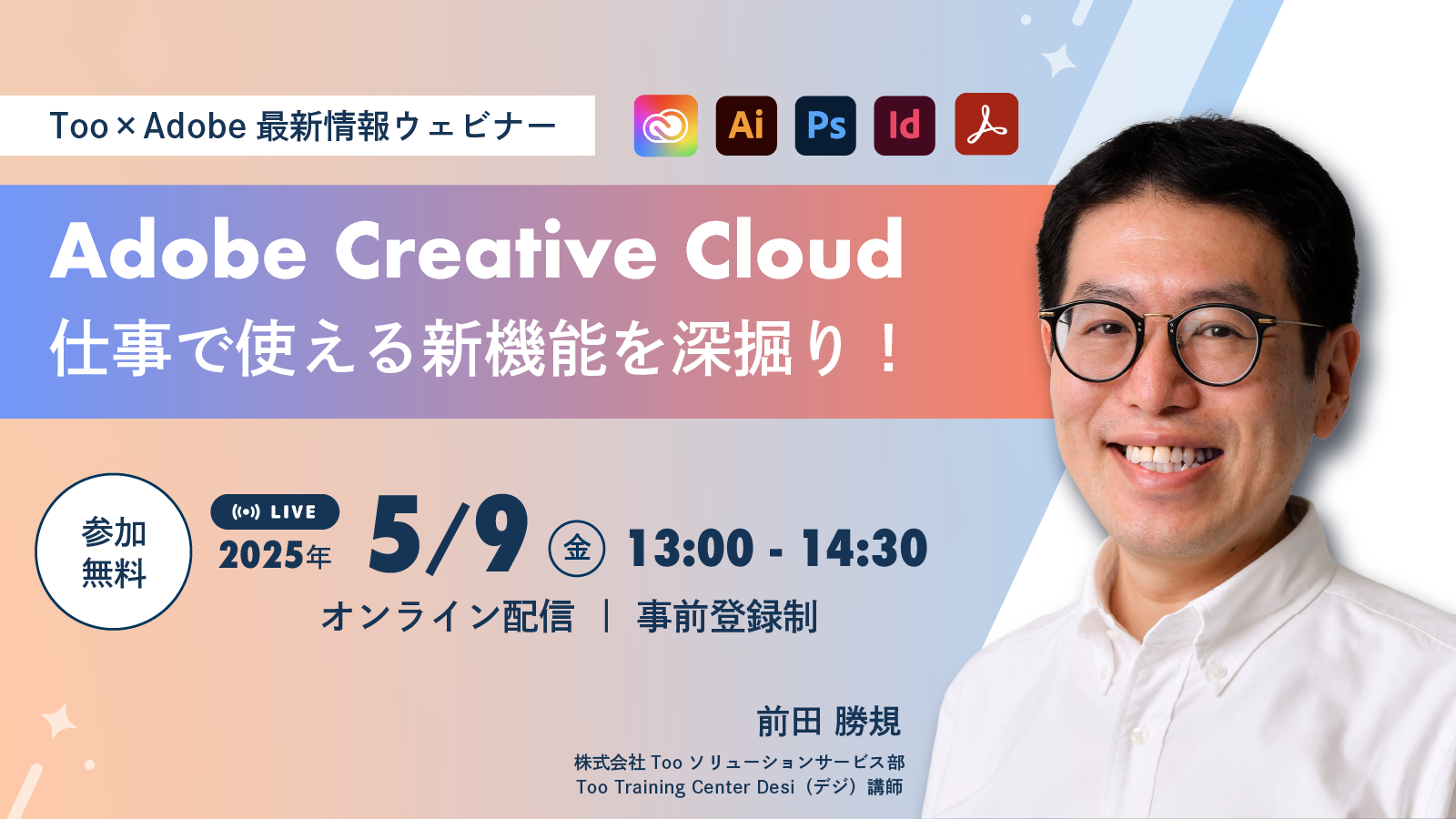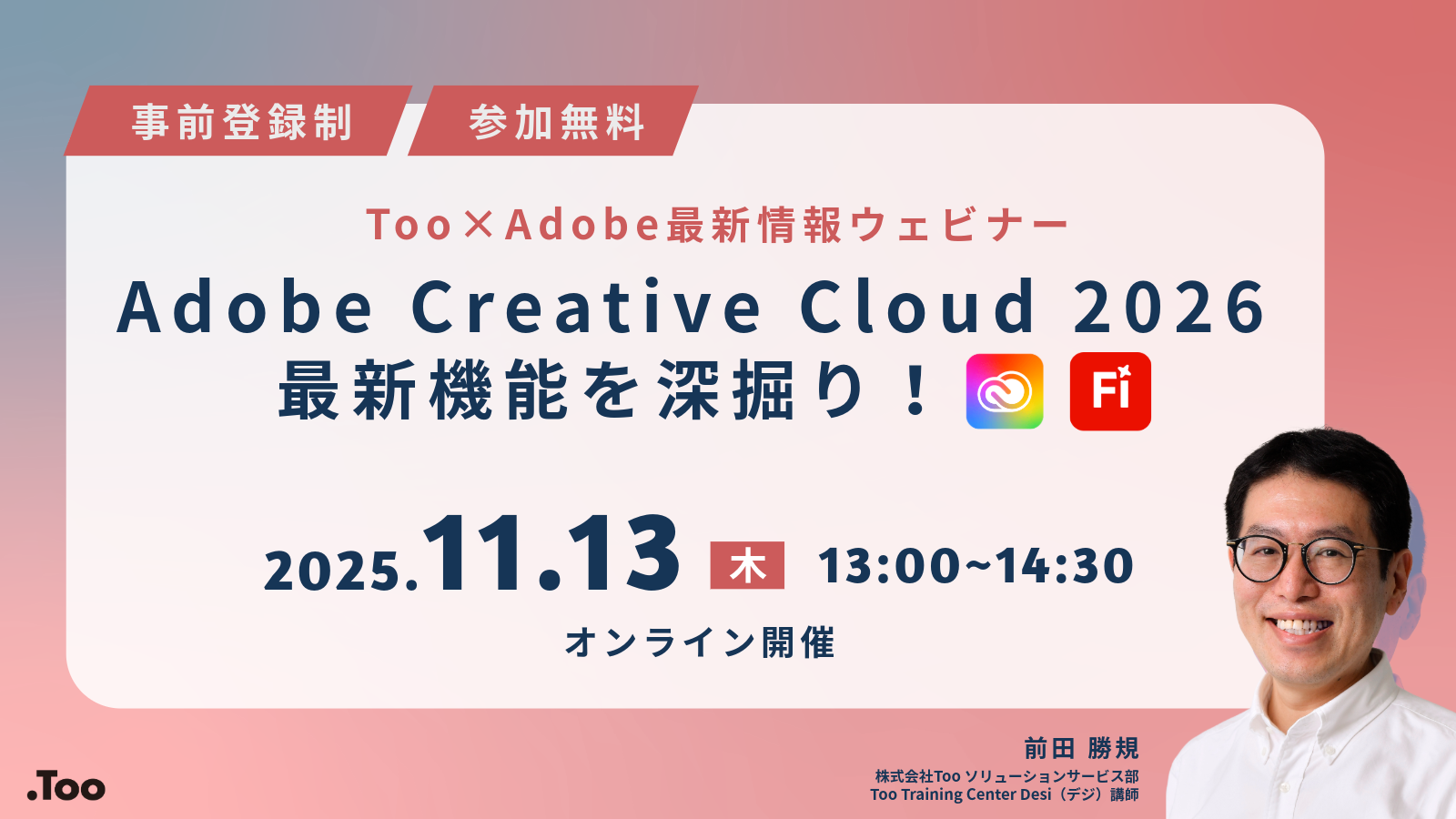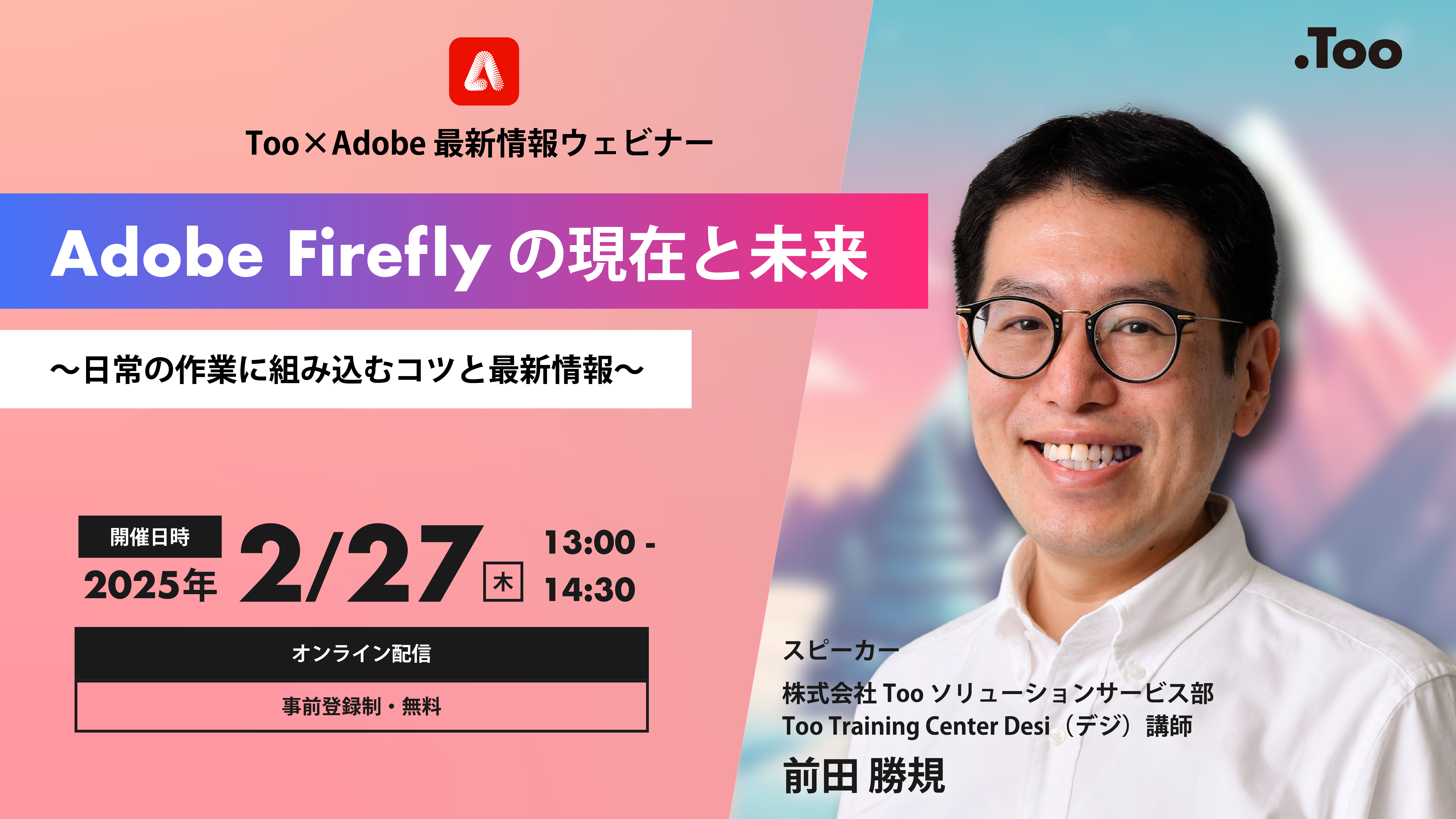 昨今、アドビ製品のアップデート頻繁が高くなり今まで以上に最新情報が追いかけにくくなっています。そのような状況を踏まえ、株式会社Tooでは2025年2月から3ヶ月に1度のペースで「アドビ製品の最新情報をまとめたウェビナー」を開催してきました。