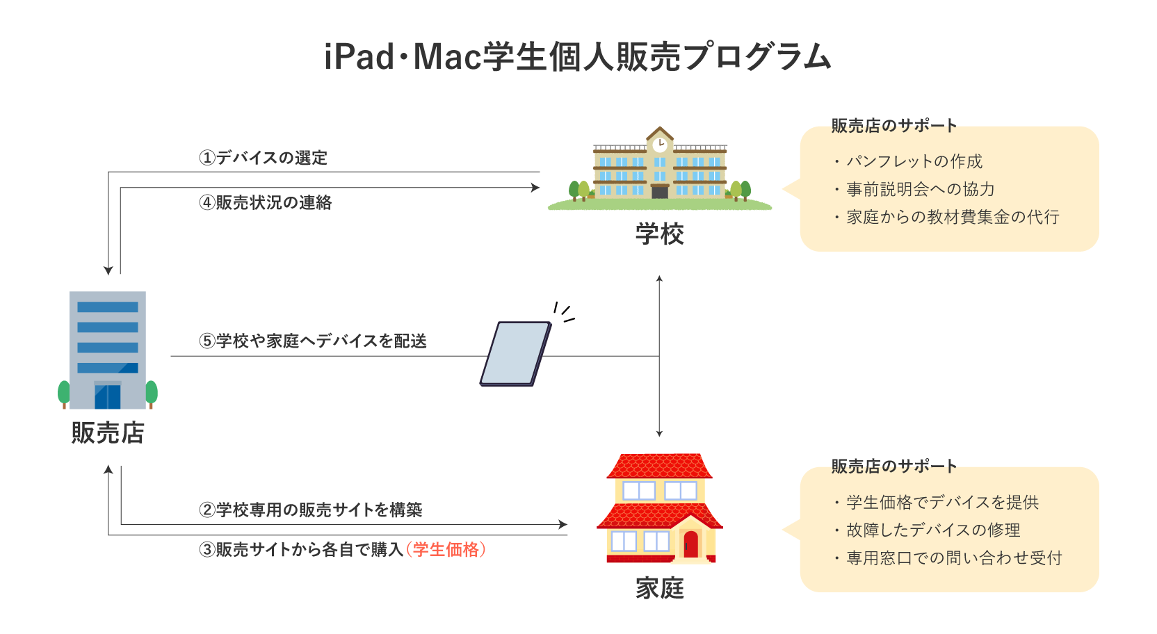 ここからは、販売店を通してデバイスを調達することの学校へのメリットや、家庭の支払額を抑えることができるプログラムをご紹介します。