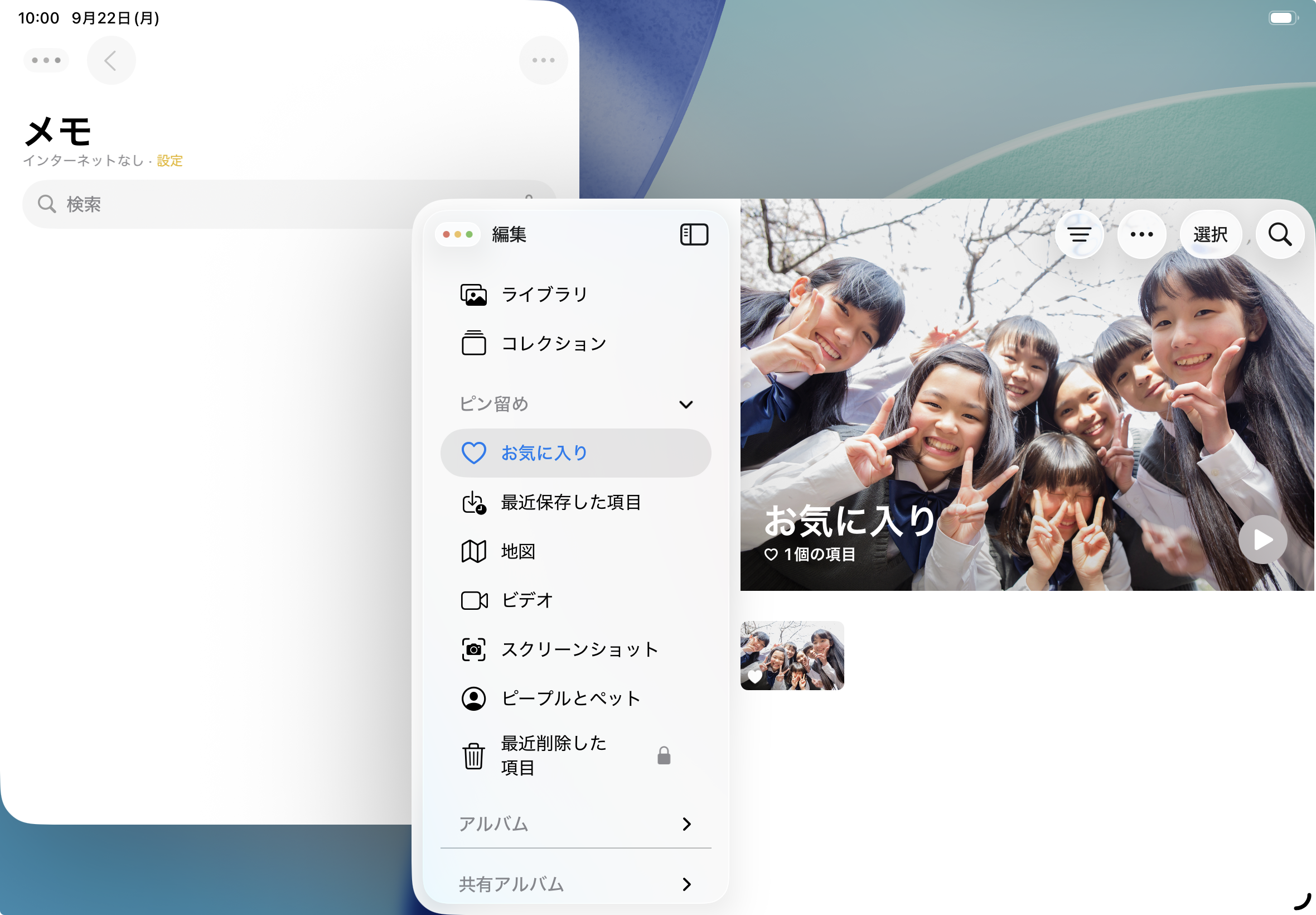 アプリケーションを開いた状態で上部をダブルタップすると、ウインドウとしてアプリが表示されます。