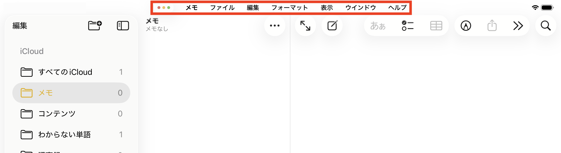 メニューバー