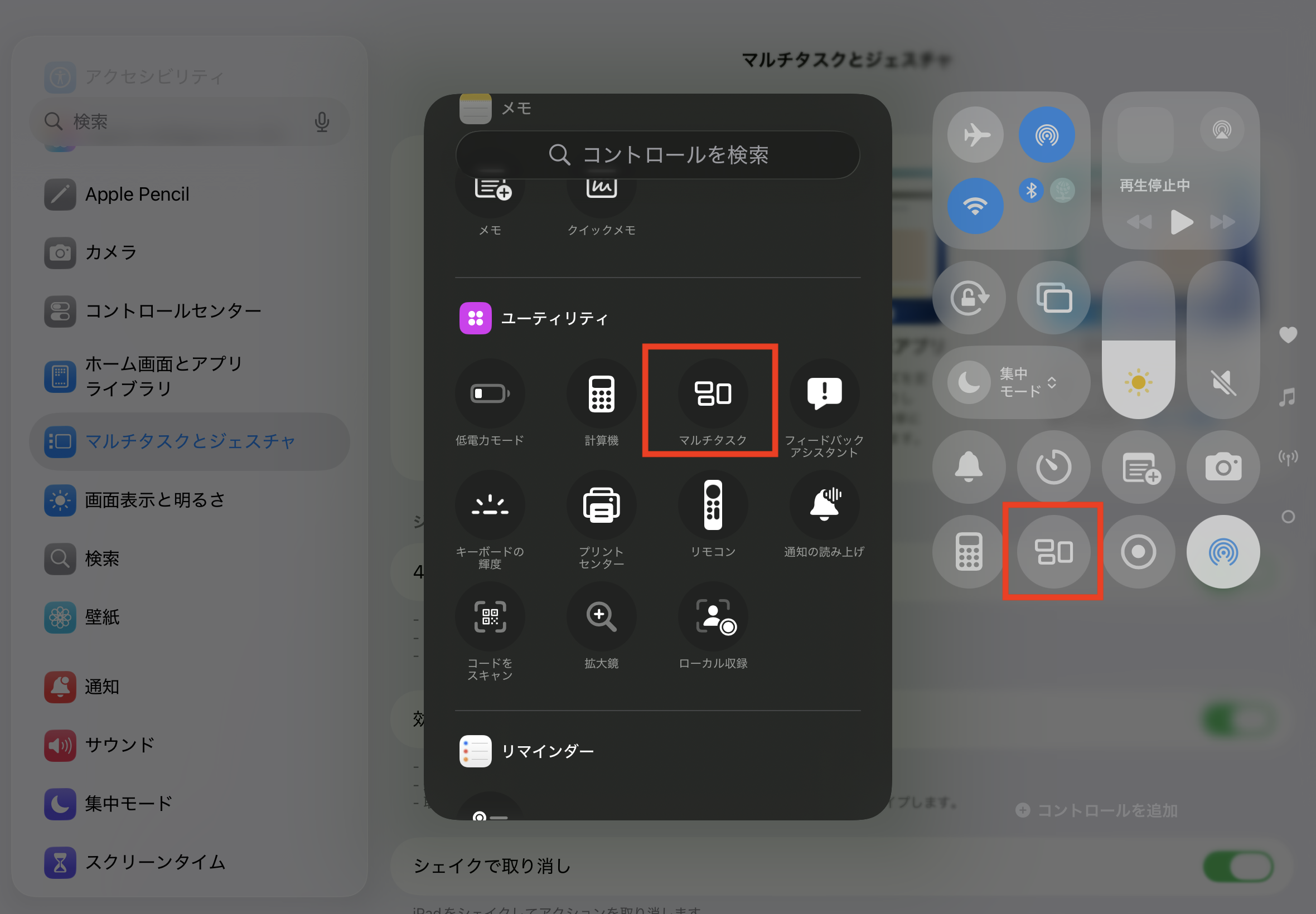OSをアップデートすると「マルチタスクとウインドウ」の表示が出現します。