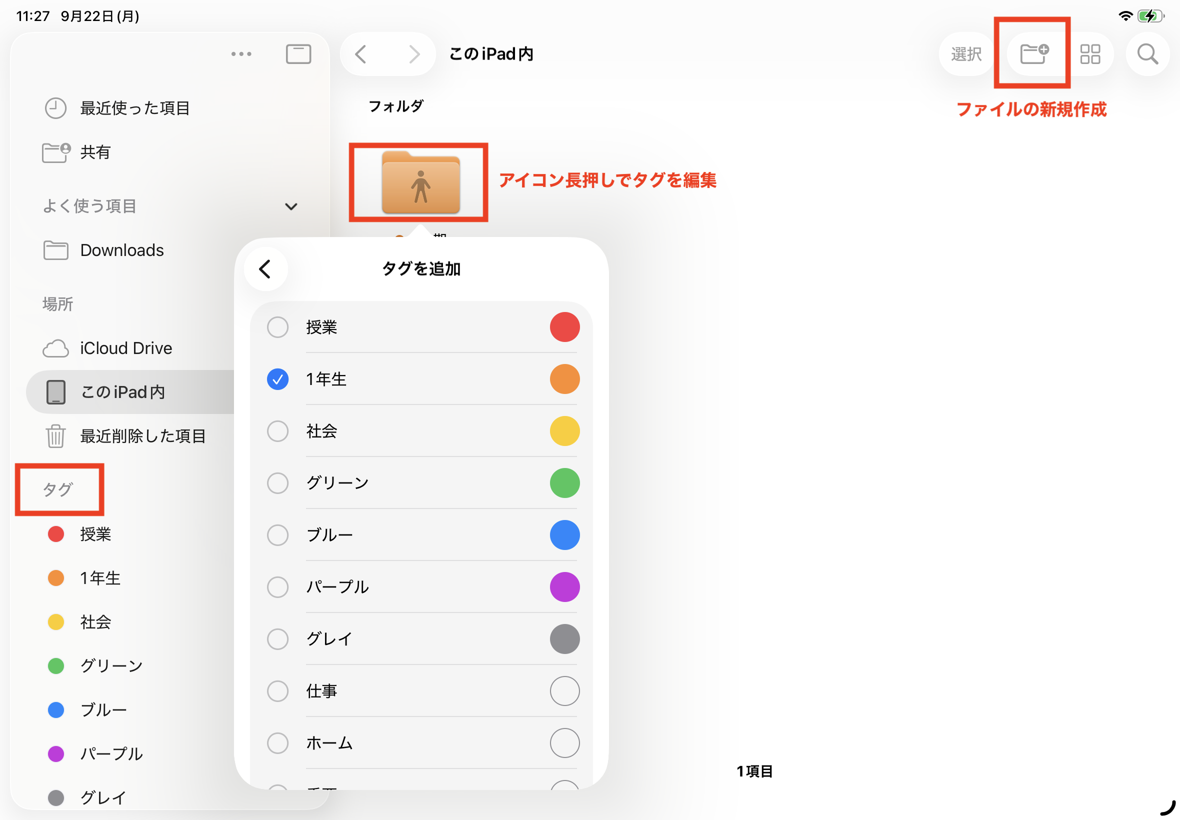 ファイルアプリには今回のアップデートで資料の整理・共有がスムーズに行える機能が追加されており、ファイル上のタグ付けからファイルの整理がしやすくなりました。