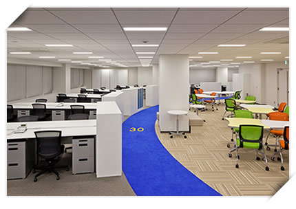 こういったオフィスのオープン化によって、クリーンな業務の遂行、そして様々なコミュニケーションから生まれる柔軟な発想による価値あるご提案、業務効率の向上を実現します。