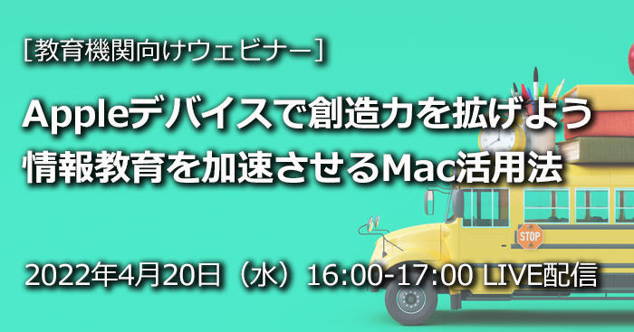 当ウェビナーでは、MacをはじめAppleデバイスが提供する機能の中から、大学・高等学校での情報教育・創造力の育成に役立つポイントと、その活用方法をご紹介します。