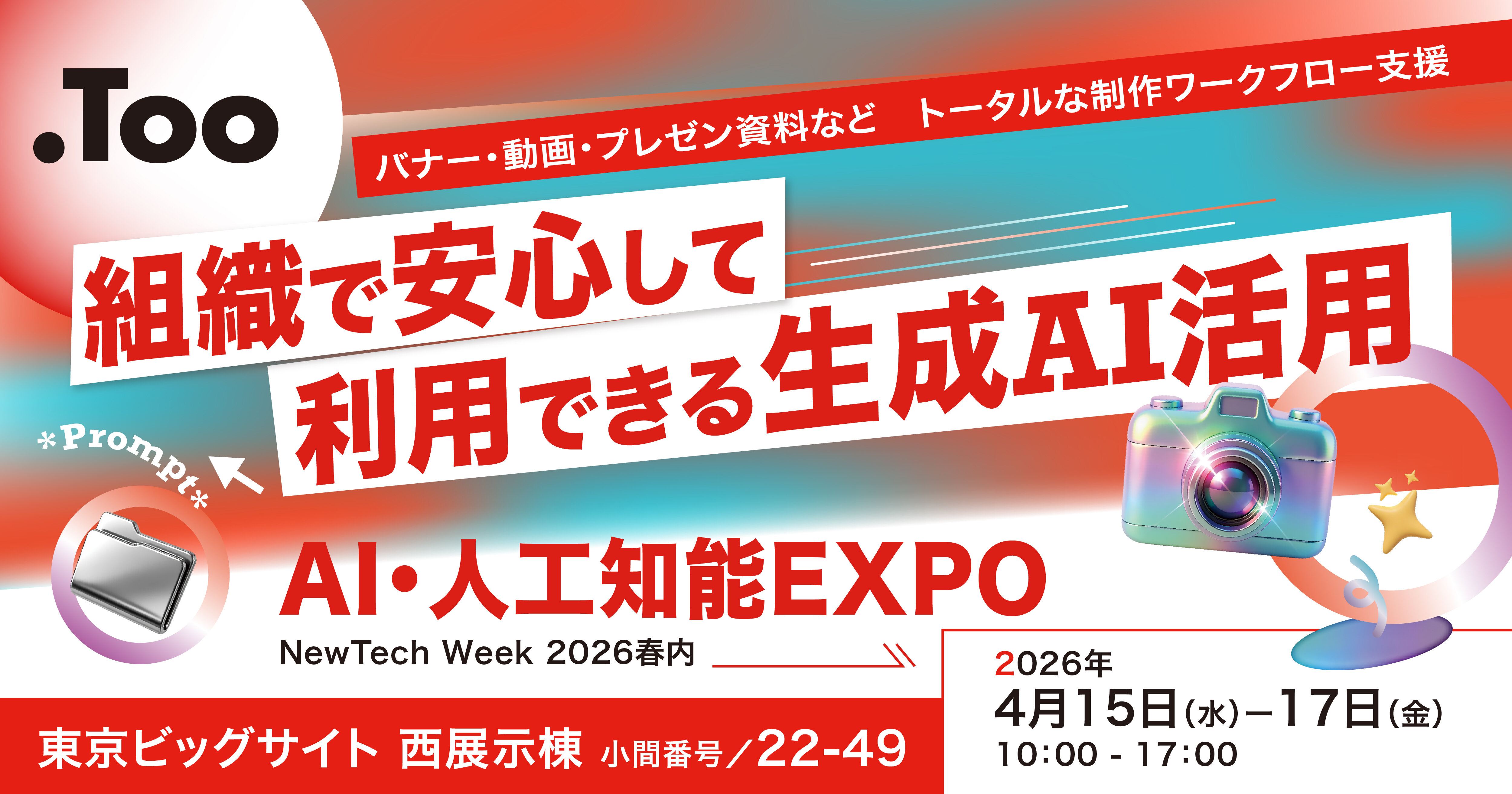 株式会社Tooは、「AI・人工知能EXPO(NewTech Week 2026春内)」に出展いたします。本展示会では、企業における生成AI活用の課題解決に向けた最新のソリューションをご紹介します。