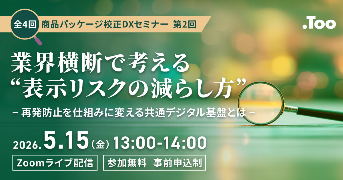 本ウェビナーでは食品、飲料、化粧品、医薬品、日用品、電気機器、玩具など、さまざまな商品パッケージに共通する「表示ミスの構造」を紐解きながら、再発防止の取り組みを、属人的な努力からデジタルを活用した仕組みへと転換する考え方を解説します。