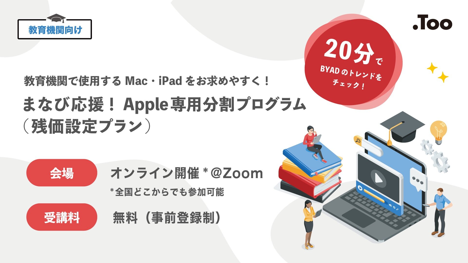 本ウェビナーでは、教育現場へMac・iPadを導入する際、費用負担を大幅に軽減してくれる新しいファイナンスプログラムをご紹介いたします!