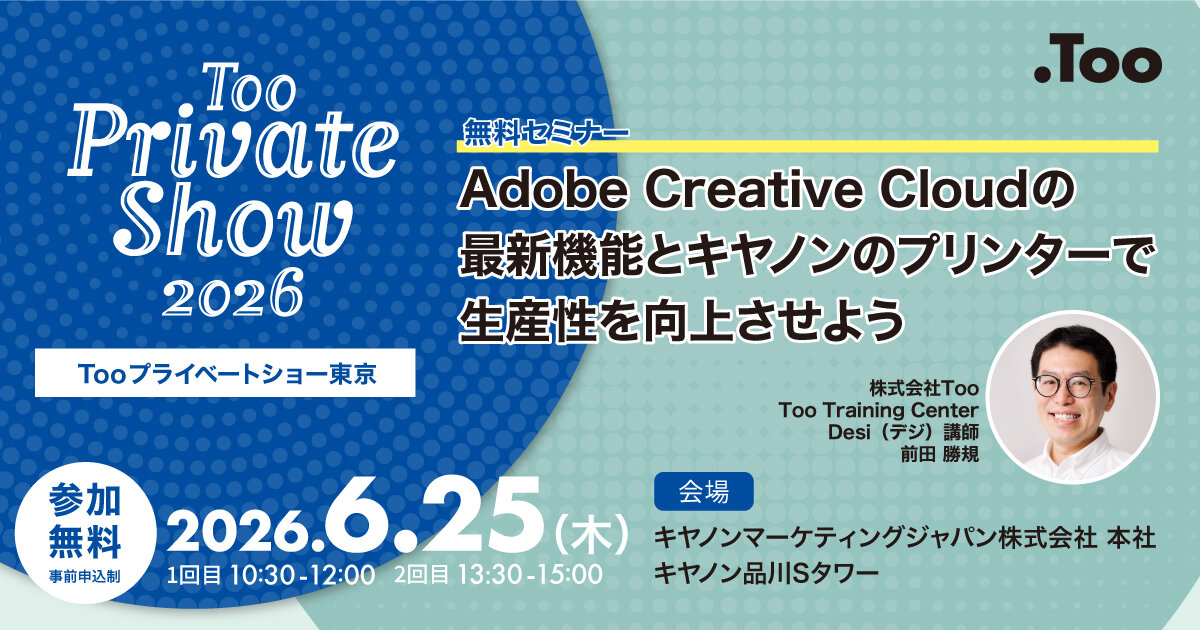 Tooプライベートショー無料セミナー Adobe Creative Cloudの最新機能とキヤノンのプリンターで生産性を向上させよう