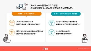 プロジェクトやチームの業務管理で課題・お悩みはありませんか? 経営者・スタッフ 全員に役立つワークマネジメントのご提案資料です。 全12ページ