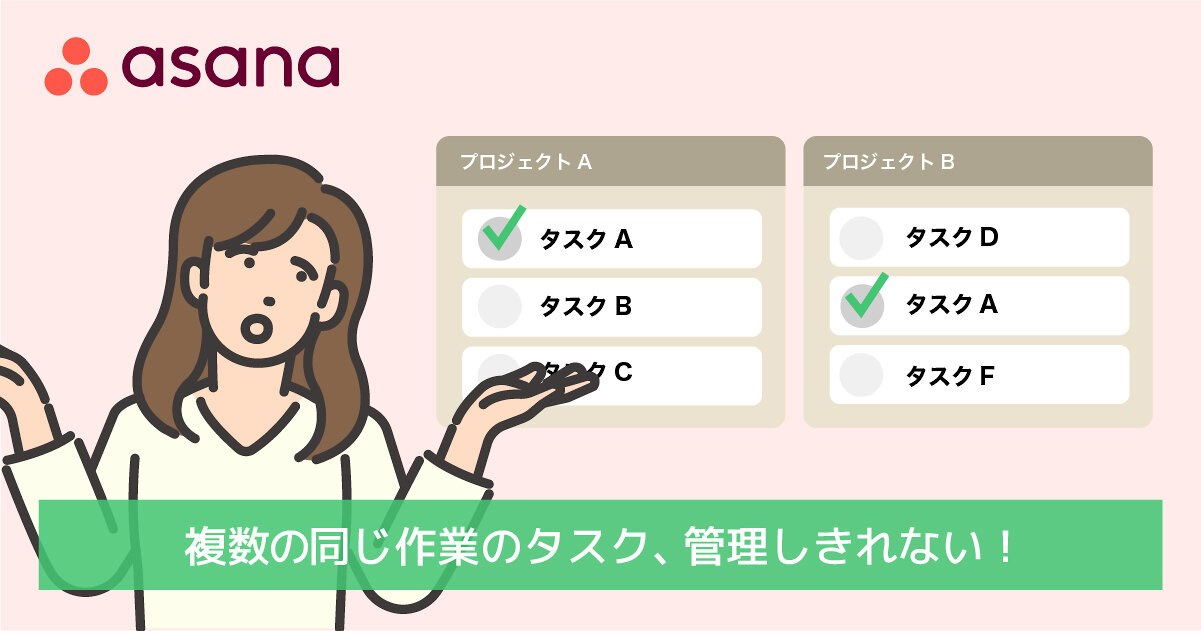 Asanaには「マルチホーム」という機能があり、1つのタスクを、複数のプロジェクトに同時に所属させることができます。「1つの仕事を1つのまま扱える」と考えてください。