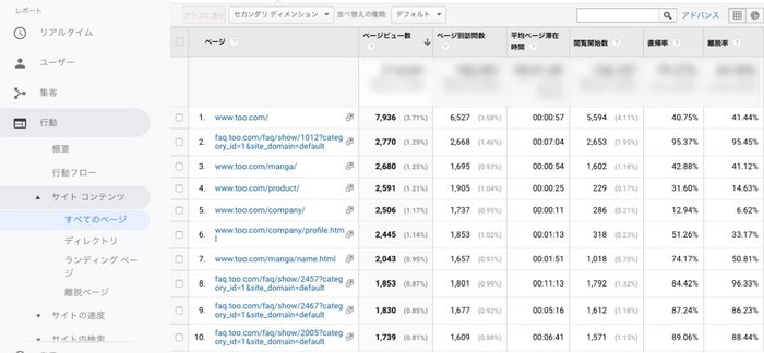 レポート > 行動 > ▼サイトコンテンツ > すべてのページ