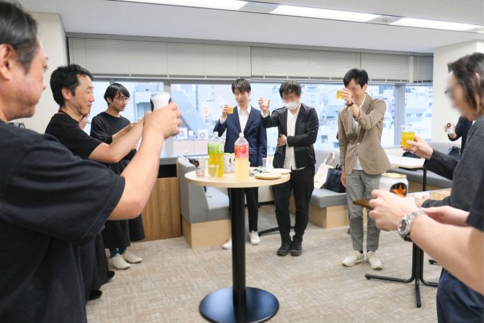 ワークショップの後には懇親会としてミートアップが開かれ、飲み物を片手に、異なる企業に所属されている方同士、今日の学びや気づきをシェアしていました。中條様と白川様にもご参加いただき、自社の働き方や取り組みについての情報交換が行われるなど、参加者の皆様にとって、新たな視点や刺激を得られる時間となったようです。