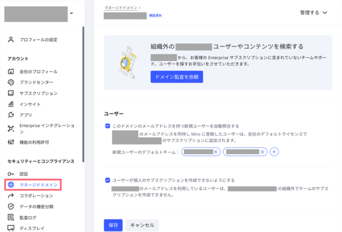 Enterpriseプランで利用可能な「ドメイン管理」の機能は、管理者がシャドーITの原因となるアカウントの新規作成を防げるだけでなく、管理外で作られたアカウントの一覧を取得することで、企業内での契約の統合を進めやすくすることができます。