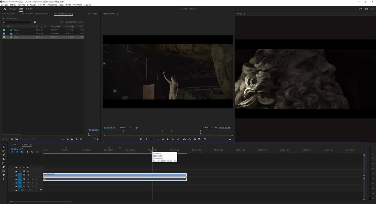 Premiere Proのシークエンスを書き出して、そのファイルをDropbox Replayに読み込みます。コメントなどを追加しているDropbox Replay画面をPremiere Pro内で表示して、Dropbox Replay画面内で表示フレームを移動させると、タイムラインに表示されているシークエンスの再生ヘッドも連動して移動します。