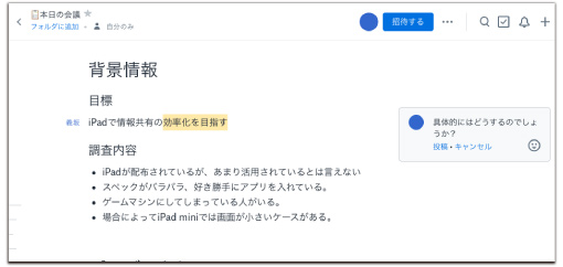 Dropbox Paperのサンプル画像。任意の場所にコメントをつけられる。