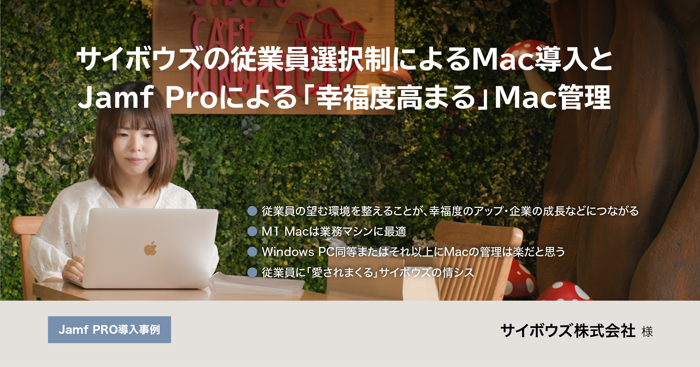 働き方の多様性を重んじるサイボウズ株式会社様ではパソコンの「従業員選択制」を導入し、標準機として採用する最新世代の「M1 Mac」をApple専用の端末管理サービスJamf Proによって管理しています。企業における効率的なMac管理の手法と情報システム部門の新しいカタチを、代表取締役社長 青野慶久様、情報システム部 青木哲朗様、ビジネスマーケティング本部 プロダクトブランディングチーム 吉原寿樹様に伺いました。