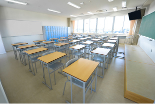 2015年に新設した校舎は明るく開放的で、教室の大きなガラス窓から光が差し込む。各教室にApple TVとスクリーン、アクセスポイントが設置され、iPad利用を前提としたICT仕様となっている。