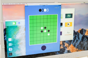 一例として、オセロゲームを制作した生徒は、石(コマ)を裏返すアクションに苦労したと話してくれました。自宅でも制作する時間をとり、他のオセロゲームではどんなアルゴリズム(戦術や戦法を導き出す仕組み)を使っているのかを調べ、自作アプリにも実装したそうです。今後挑戦したいという1人対戦モードについても、「この方法では計算に時間がかかって駄目でした」「こうすれば実装できると思うんです」と構想とともに意気込みを語ってくれました。