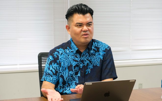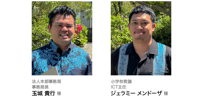 同校では、教員が校務で使用するデバイスをWindows PCからMacへ切り替え、教員と生徒用デバイスをApple製品に統一しました。管理者の視点から、Macを導入した背景や効果について、法人本部事務局 事務局長 玉城貴行様、小学校教諭 ジェラミーメンドーザ様に伺いました。