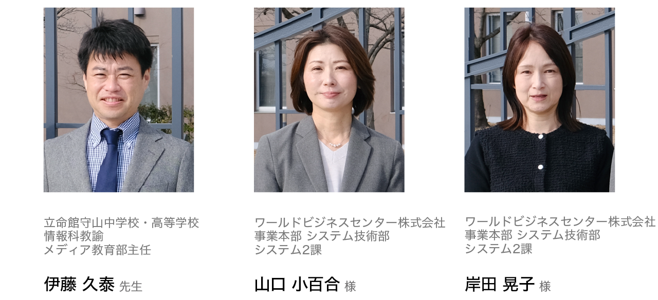 2023年度高校入学生より、アウトプットの幅を劇的に広げ、より質の高い学びを提供するため、生徒一人ひとりがiPadとMacの2台持ちという先進的な学習環境を実現しました。導入の経緯から効果までを、情報科教諭で校内のICT管理をされている伊藤久泰先生と、同校でデバイスの運用をされているワールドビジネスセンター株式会社の山口小百合様、岸田晃子様に伺いました。