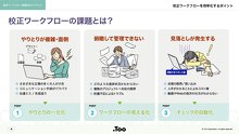 制作物の校正ワークフローをオンライン化、時短、コスト削減、ミスを防ぐことのできるソリューションのご提案資料です。
