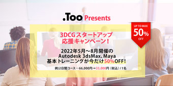 2022年5月~2022年8月に実施する3ds Max、Mayaの基本講習を通常の50%OFFでご受講いただけます