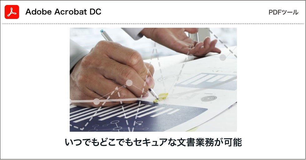 Adobe Acrobatは、iPadでも簡単に電子署名や文書共有ができます。強固なセキュリティに守られたまざまな文書業務を支援する強力なツールを備えており、それらを時間や場所にとらわれずスムーズに実行できます。安全な文書をどこでも取り扱うことのできるセキュアなソリューションです。
