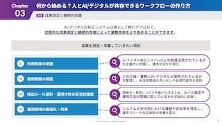 AI/デジタルをパッケージ校正業務に取り入れるためにまず何から取り組めば良いか、はじめの一歩としてお役立ていただける内容となっています。