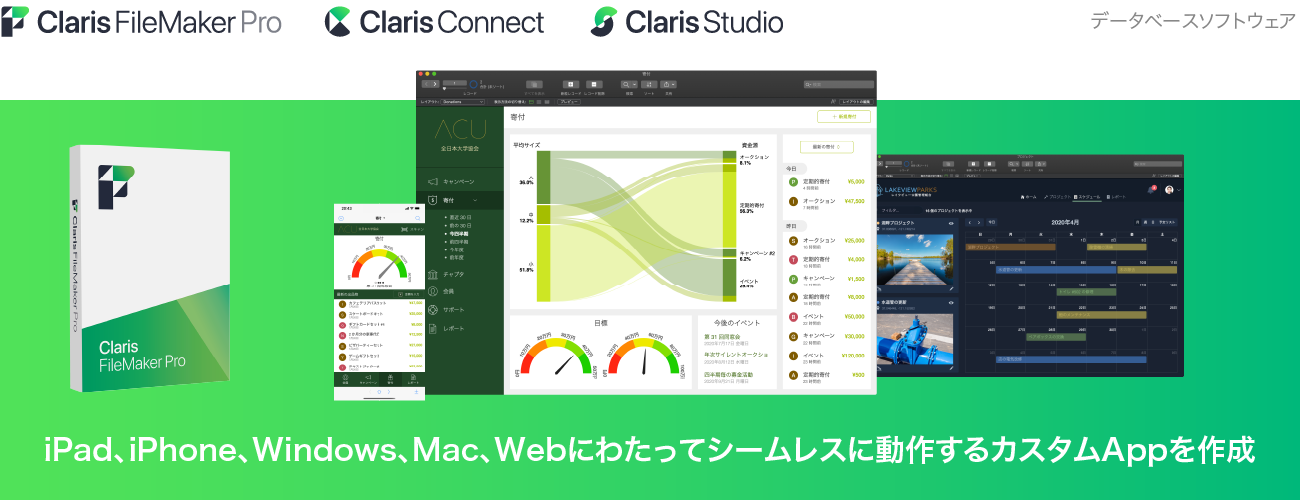 iPad、iPhone、Windows、Mac、Webで、大切な情報を共有しながら簡単に管理するデータベース環境を構築します。