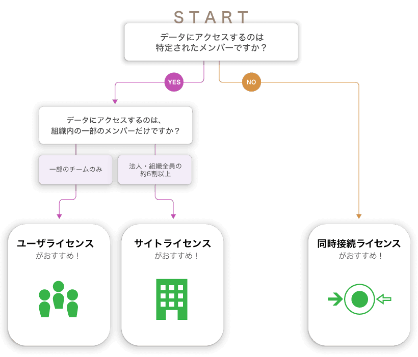 ボリュームライセンス(オンプレミス)は、ユーザ数や利用者の属性によっておすすめなライセンスが異なります。下記「あなたにぴったりなボリュームライセンスの種類は?」を参照ください。