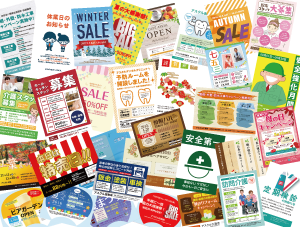 集客・受注を大きく伸ばすチラシづくりには、様々なバリエーションのテンプレートが必要不可欠です。当サービスでは数百種類に及ぶクオリティの高いデザインテンプレートが用意されています。「販促チラシ」「アンケート」「ポスター」「名刺」「ハガキ」など、利用シーンに会わせた多種多様なコンテンツが取り揃えられています。