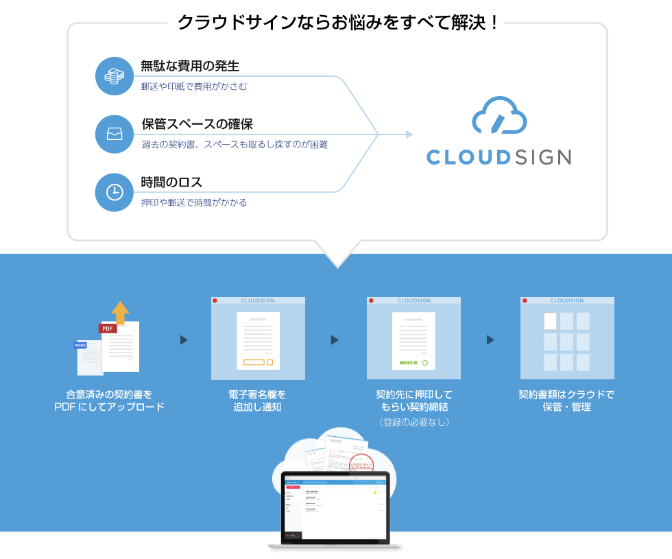 クラウドサインは「紙と印鑑」を「クラウド」に置き換え、