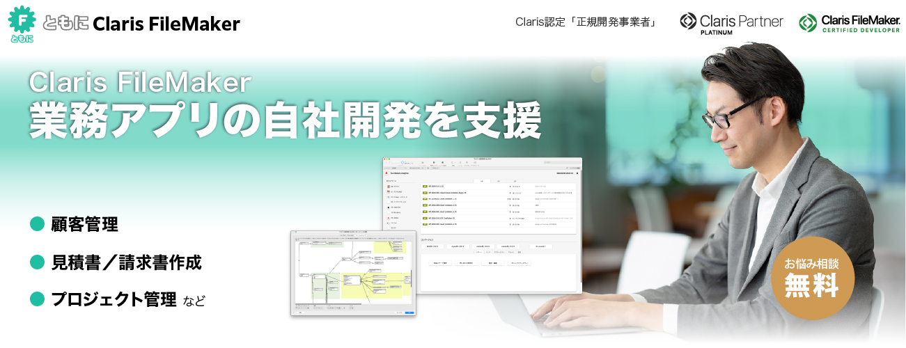 お客様の業務内容に合わせて、Claris FileMakerのカスタムApp開発を支援するサービスです。