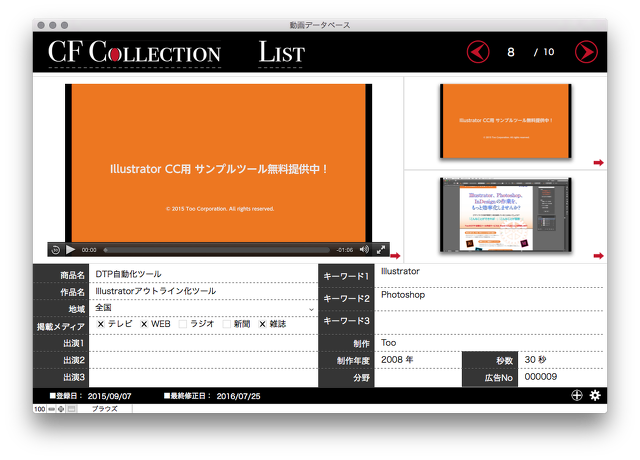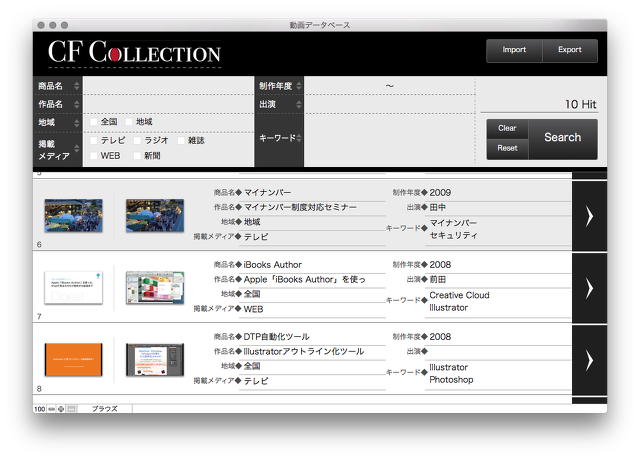 大量の動画をサムネイルで表示することで、目的の動画をすばやく探し出します。 見つけた動画はページ内での再生、また権限のあるユーザはダウンロードも可能。 フォルダ管理だと探すのが大変な動画データに素早くアクセス出来るようになります。