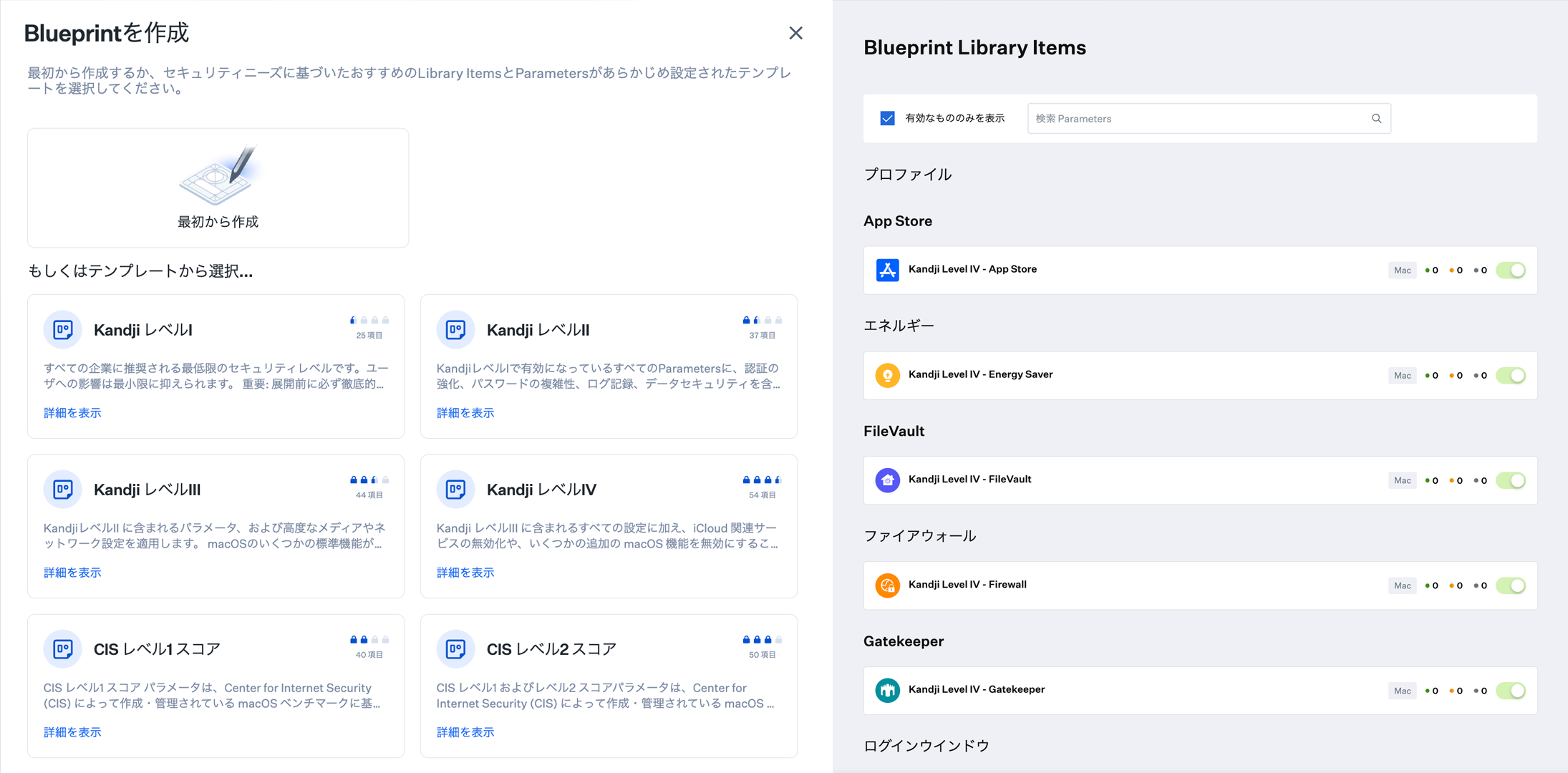 - 豊富なテンプレート:MDMによる管理が初めてでも手間を省いて始められる