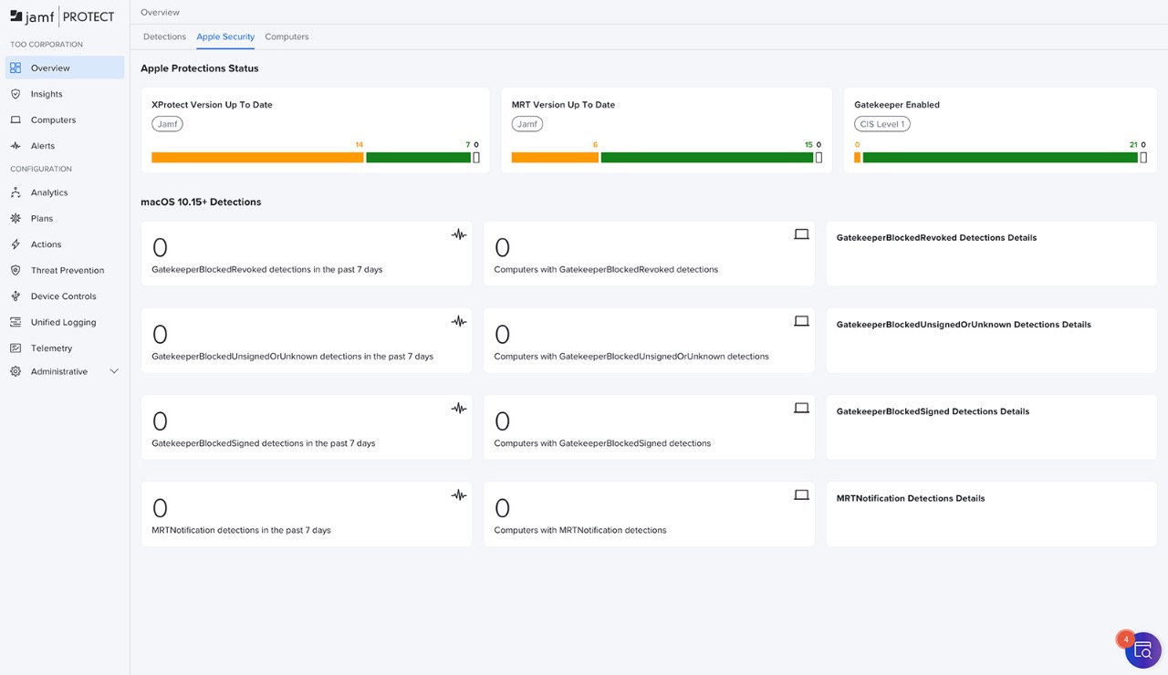 Jamf ProtectではmacOS内蔵のセキュリティフレームワークにもとづき、セキュリティインシデントの対応と修正をおこなえます。