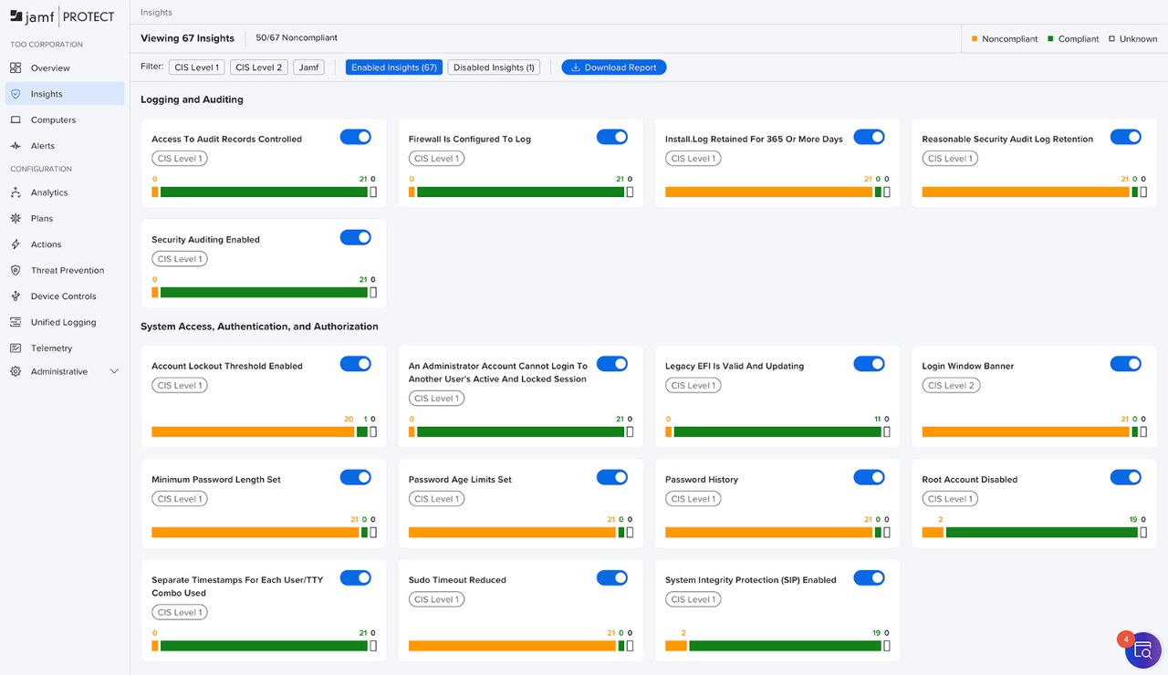 Jamf独自のデータベースにもとづいて、悪意のあるプロセスの検出、ブロック、隔離をおこなえます。監視したいプロセスを会社独自でカスタマイズすることも可能です。