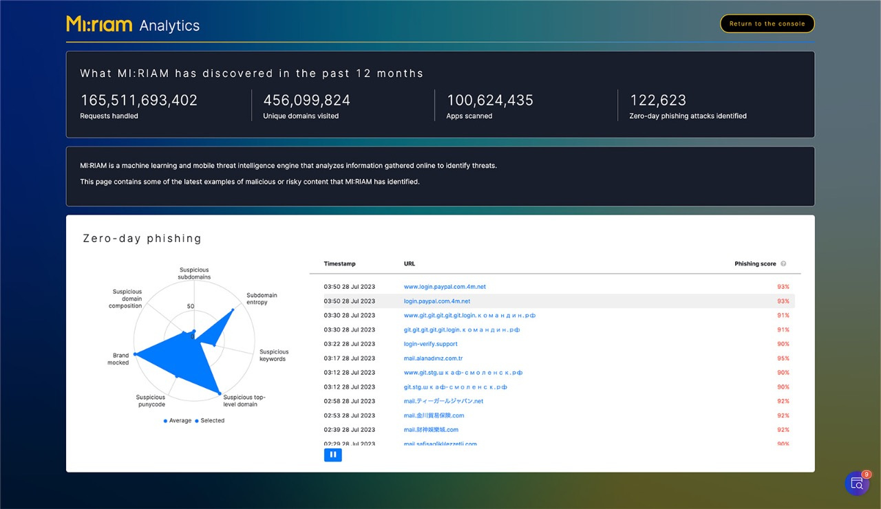 Jamf独自の脅威インテリジェンスエンジン「MI:RIAM」の高度な機械学習により、未知の脅威もブロックします。