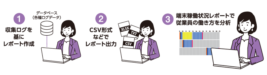 PC操作ログやIT資産情報を収集し、監視・制御することで、内部情報漏洩を防ぎます。