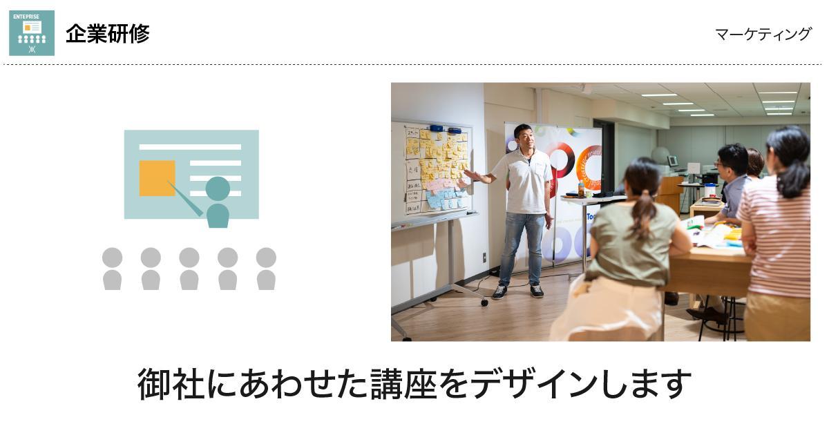 講師が訪問して、希望に沿ったカリキュラムで講習します。ハンズオンに最適な講習形式はもちろんセミナー形式での実施もいたします。オンラインでの開催も可能です。