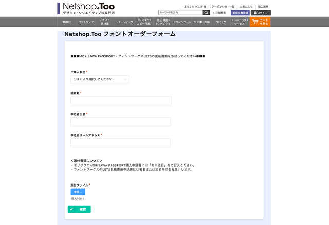 契約更新日時の30日以内になっている場合は、月割りでの購入申請書は発行いただけません。次年度更新も含めた追加のお手続きになりますので、「Morisawa Fonts 更新方法」よりお進みください。